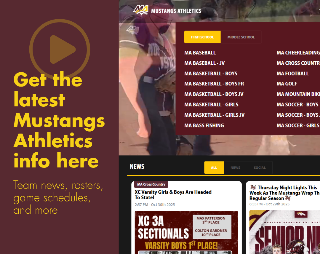 I am both excited and honored to welcome you to another thrilling year of high school sports at Madison Academy. As your Athletic Director, I want to affirm our commitment to excellence in every aspect of our athletic program and to the holistic development of each student-athlete we serve.